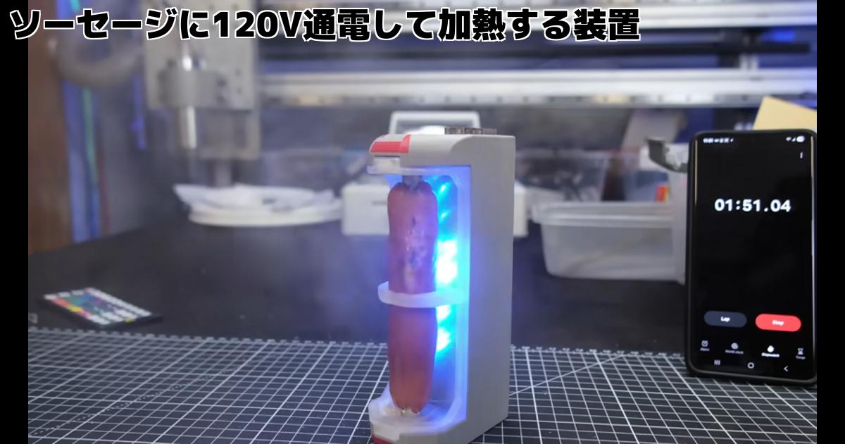 ソーセージに120V通電して加熱する装置を紹介します