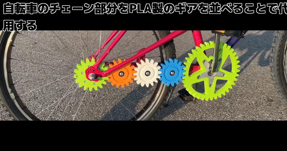 自転車のチェーン部分をPLA製のギアを並べることで代用する作例です。