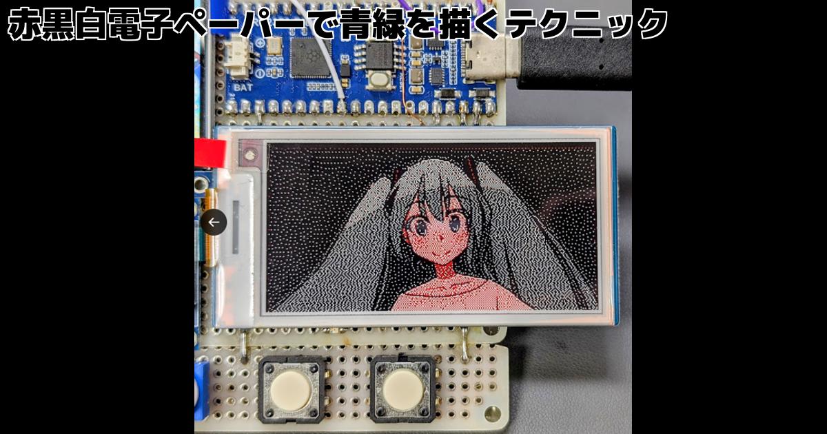 赤黒白の電子ペーパーで青緑に見える表示をするテクニックを紹介します